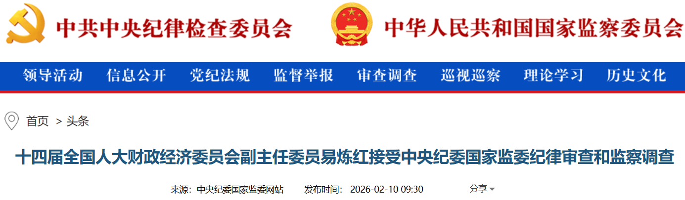 全国人大财经委副主任委员易炼红被立案调查,这则来自中央纪委国家监委网站的消息,在2026年2月10日迅速引起广泛关注。中央纪委国家监委网站发布消息,十四届全国人大财政经济委员会副主任委员易炼红涉嫌严重违纪违法,目前正接受纪律审查和监察调查。这位曾在多个重要岗位担任主要领导职务的正部级官员,其被查引发了社会各界对反腐败斗争新阶段特点的深入思考。事件脉络与信号意义易炼红被查事件引发广泛关注,其背后传递