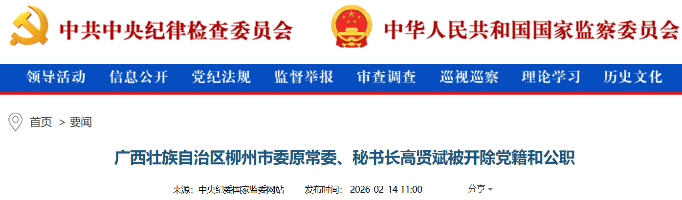 2月14日,广西壮族自治区纪委监委发布消息,柳州市委原常委、秘书长高贤斌因严重违纪违法被开除党籍和公职。这一案件的通报,不仅是对其个人行为的定论,更是对全体党员干部的一次深刻警示。高贤斌作为党培养多年的领导干部,从一方主政者沦为阶下囚,其堕落轨迹发人深省,其违纪违法行为的典型性,再次敲响了党风廉政建设和反腐败斗争的警钟。信仰迷失,底线失守:“两面人”的典型样本通报指出,高贤斌“丧失理想信念,背弃初