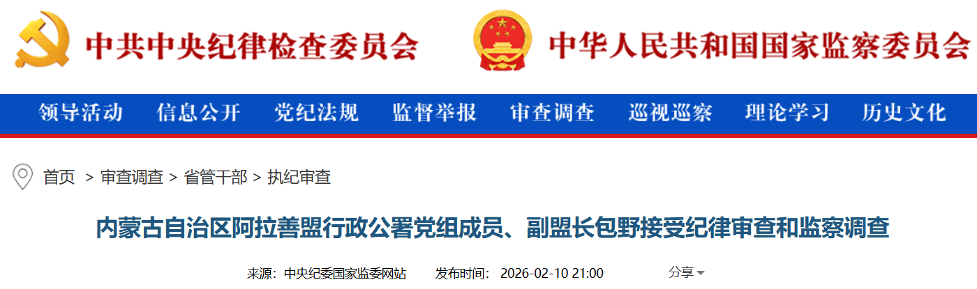 一天之内,内蒙古自治区三位厅级官员相继落马的消息在纪委监委网站同步公布,迅速成为舆论焦点。2026年2月10日,内蒙古自治区纪委监委网站同时发布三条审查调查通报:包头市人大常委会原党组书记、主任徐德林,阿拉善盟行政公署党组成员、副盟长包野,呼伦贝尔市政协原党组成员、副主席田晓川均因涉嫌严重违纪违法接受纪律审查和监察调查。同一天内三名官员被查内蒙古自治区纪委监委在2月10日同时公布了三名官员接受审查