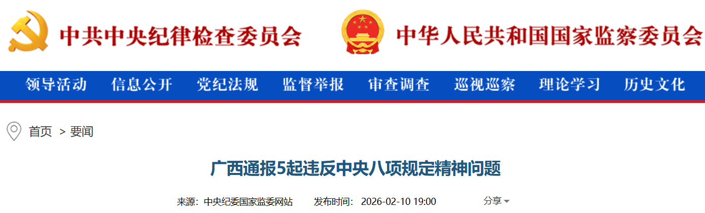 编者按:春节将至,年关亦是廉关。中央纪委国家监委网站此次通报的五起典型问题,时间跨度长、涉及层级广、违纪类型新,深刻揭示了作风问题与腐败问题同根同源、互为表里的内在规律。从私人会所的推杯换盏,到高档酒水的利益勾兑;从违规收受礼金的“人情往来”,到巨额贿赂背后的权力寻租——无论是身居高位的“一把手”,还是基层一线的乡镇干部,但凡在纪律规矩面前耍“隐形”、搞变通,终将付出沉重代价。值得高度警惕的是,李