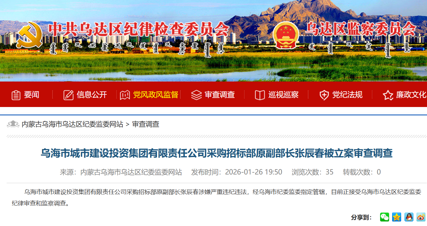 乌海市城投集团采购招标部原副部长张辰春因涉嫌严重违纪违法接受审查调查的消息,再次将公众目光聚焦在重点领域和关键环节的廉政风险防控上。采购招标环节因其资金密集、权力集中、专业性强等特性,成为违纪违法行为的易发多发区。张辰春案件的查处,既展示了纪检监察机关对重点领域腐败问题“零容忍”的坚决态度,也警示我们必须筑牢重点领域反腐防线。案件追踪乌海市纪委监委发布权威消息:乌海市城市建设投资集团有限责任公司采