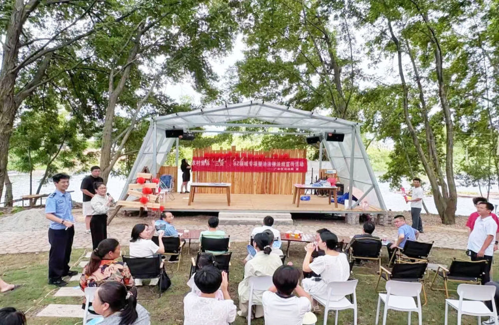 “乡亲们,法律不是书本里的‘硬条文’,是咱过日子的‘护身符’!” 近日,江西上饶广丰区“公检法司”的干警们,走进上饶市广丰区沙田镇港口村搭起“法治大舞台”。这场把农村集体“三资”管理、殡葬领域整治等法律知识揉进互动里的普法活动,用“你问我答+才艺表演+趣味游戏”的新鲜形式,让老乡们看得入迷、学得扎实。活动现场,村口的“市集法治小驿站”里,热闹得像赶大集一样。挂着的法治灯谜纸条随风飘动,“农村集体资