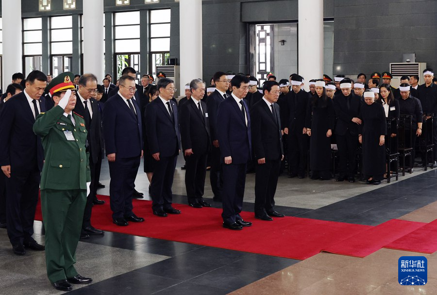 7月25日,习近平总书记特别代表,中共中央政治局常委、全国政协主席王沪宁率中共代表团在越南首都河内,吊唁越共中央总书记阮富仲逝世。新华社记者 姚大伟 摄新华社河内7月25日电(记者朱超 胡佳丽)7月25日,习近平总书记特别代表,中共中央政治局常委、全国政协主席王沪宁率中共代表团在越南首都河内,吊唁越共中央总书记阮富仲逝世,并会见越南国家主席苏林以及越南总理范明政等越共中央领导人。吊唁仪式在越南国家