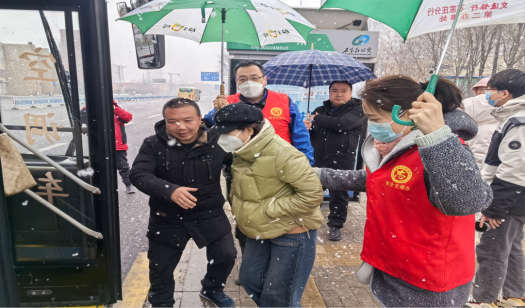 2月21日早晨,河北石家庄迎来今年春天第一场雪,雪花纷纷扬扬地飘落,给城市披上了银装,却也给市民的出行带来诸多不便。在这寒冷的雪天里,公交站台却处处涌动着温暖,石家庄市公交集团西部公司九路车队的公交志愿者们用实际行动为乘客和环卫工人送去了关怀与帮助。 清晨,雪还在不停地下着,城市的公交站台逐渐被积雪覆盖。九路车队的公交志愿者们早早来到车管所站台,他们手持雨伞,在站台入口处等候。每当有公交