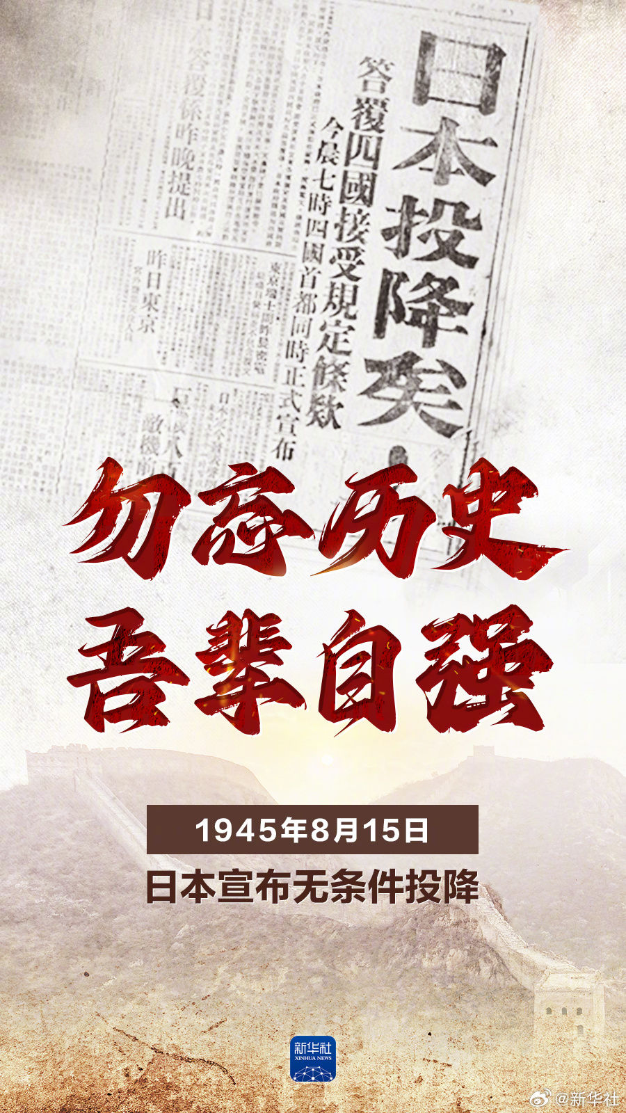 1945年8月15日日本宣布无条件投降14年山河不屈14年浴血奋战这场正义的胜利来之不易我们永远不会忘记!