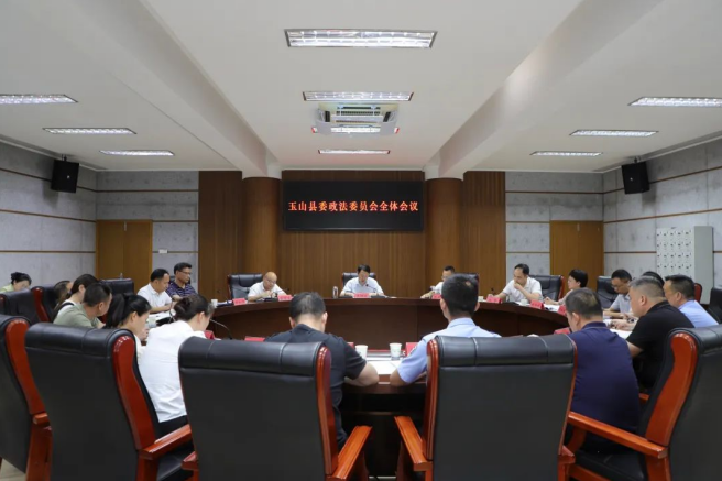 6月23日,江西省上饶市玉山县委政法委员会全体会议召开,玉山县委常委、政法委书记吴雄跃主持并讲话,杨建伟、董有生、陈雷出席。就如何做好下一步政法工作,吴雄跃强调,要坚决纠治违规吃喝歪风,筑牢政治自觉根基,强化以案示警,压实责任链条,确保整治落地见效。要坚决守住风险防范底线,切实抓好社会面安全稳定、移交信访件办理、中心规范化建设、防范化解各类风险等工作,确保社会大局安全稳定。要坚决守牢为民服务初心,